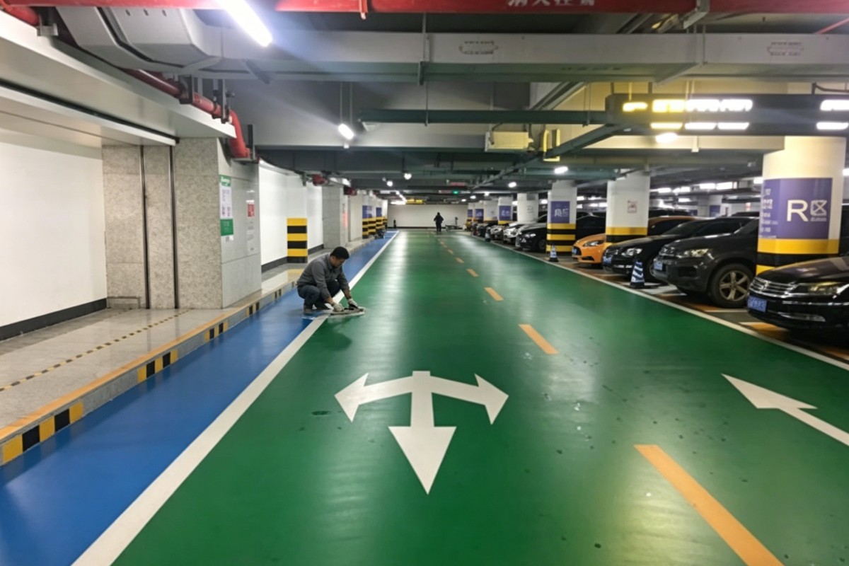 衡阳耒阳公平圩镇停车场车库聚氨酯地坪施工厂家